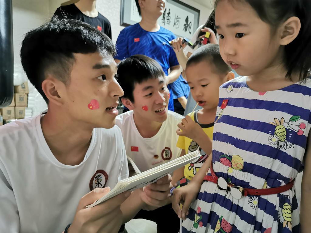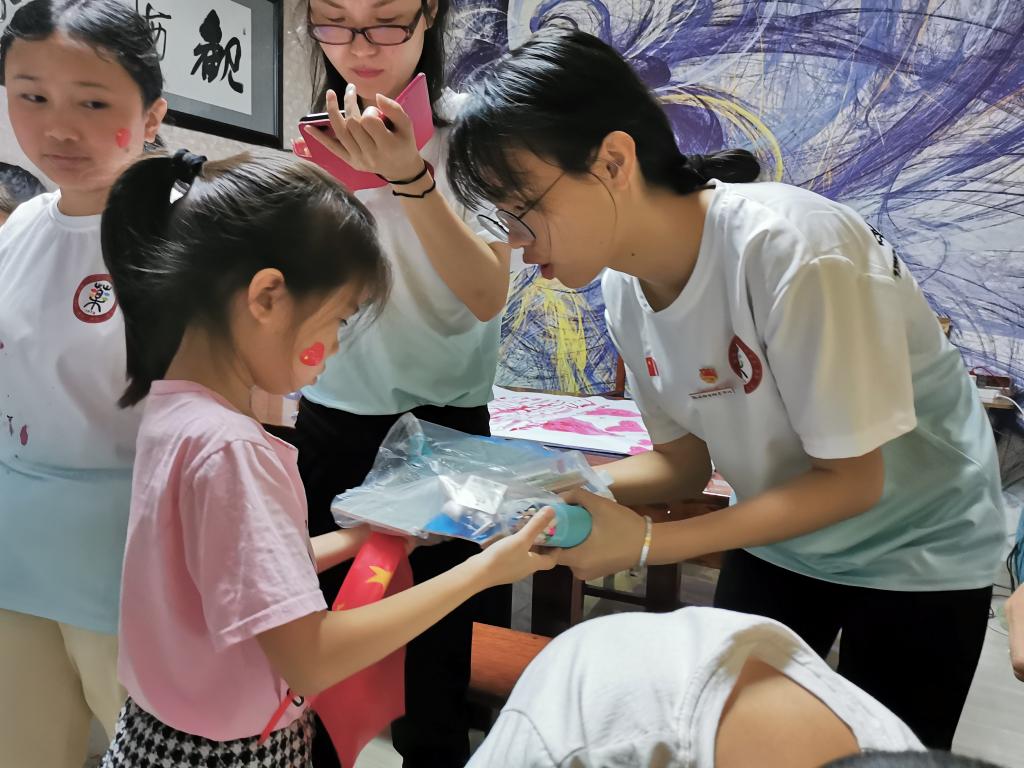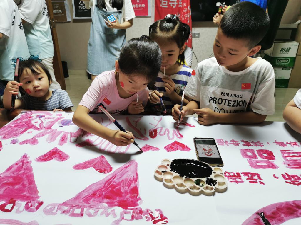 當日早晨,小朋友們早早到達指定地點。我們按照原先制定的計劃,有條不紊地進行著活動內(nèi)容?;顒娱_始志愿者們用帶領小朋友們繪畫的形式加強孩子們對禁毒防艾的認識和了解,培養(yǎng)他們的安全意識;現(xiàn)如今垃圾分類已經(jīng)成為熱門話題,志愿者們便用自己精心制作的小卡片代替各種垃圾,耐心地跟小朋友們講解著四類垃圾的分類小訣竅;緊接著由黃潮同學帶領孩子們一起合唱《歌唱祖國》。