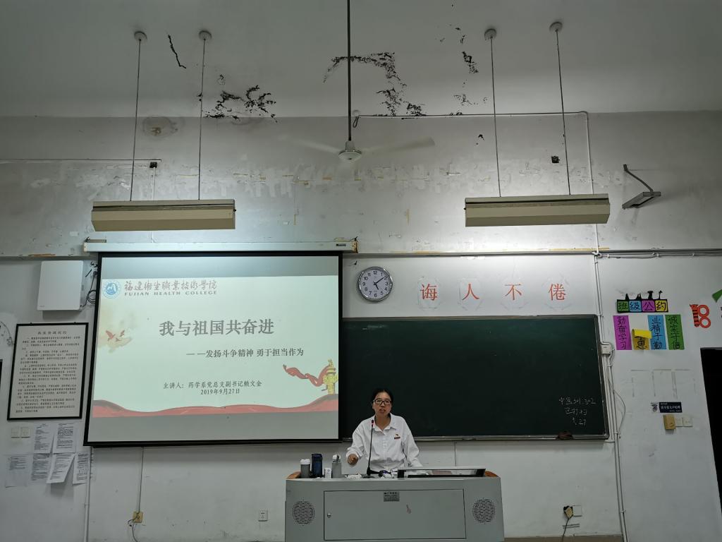 為培養(yǎng)學(xué)生干部的責(zé)任與擔(dān)當(dāng)意識,提高學(xué)生干部的政治素養(yǎng)和工作能力,9月27日,藥學(xué)系黨總支副書記賴文金老師在藥學(xué)系二階為兩委會成員及各班級班團(tuán)干部90余人講授“我與祖國共奮進(jìn)”專題團(tuán)課。