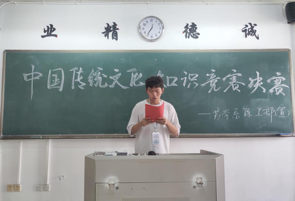 為弘揚(yáng)中華民族優(yōu)秀傳統(tǒng)文化,將社會(huì)主義核心價(jià)值觀教育與中國(guó)優(yōu)秀傳統(tǒng)文化教育相結(jié)合,使中國(guó)優(yōu)秀傳統(tǒng)文化在學(xué)生中實(shí)現(xiàn)內(nèi)化于心、外化于行的良好效果,10月23日,藥學(xué)系在教學(xué)樓307舉行中國(guó)傳統(tǒng)文化知識(shí)競(jìng)賽總決賽。