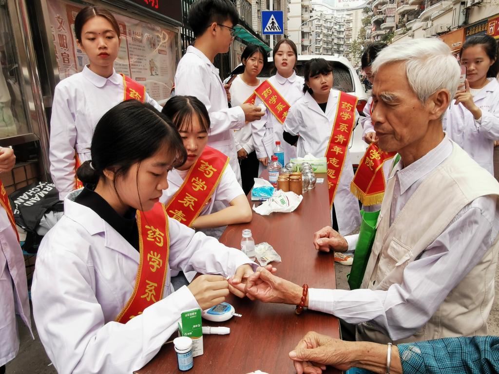 為弘揚(yáng)社會志愿服務(wù)精神,增強(qiáng)居民關(guān)愛健康的意識,10月26日上午,藥學(xué)系團(tuán)總支帶領(lǐng)其培養(yǎng)人攜手院紅十字會與康健俱樂部在后縣社區(qū)開展“青春追夢,牢記使命”為主題的團(tuán)日活動。