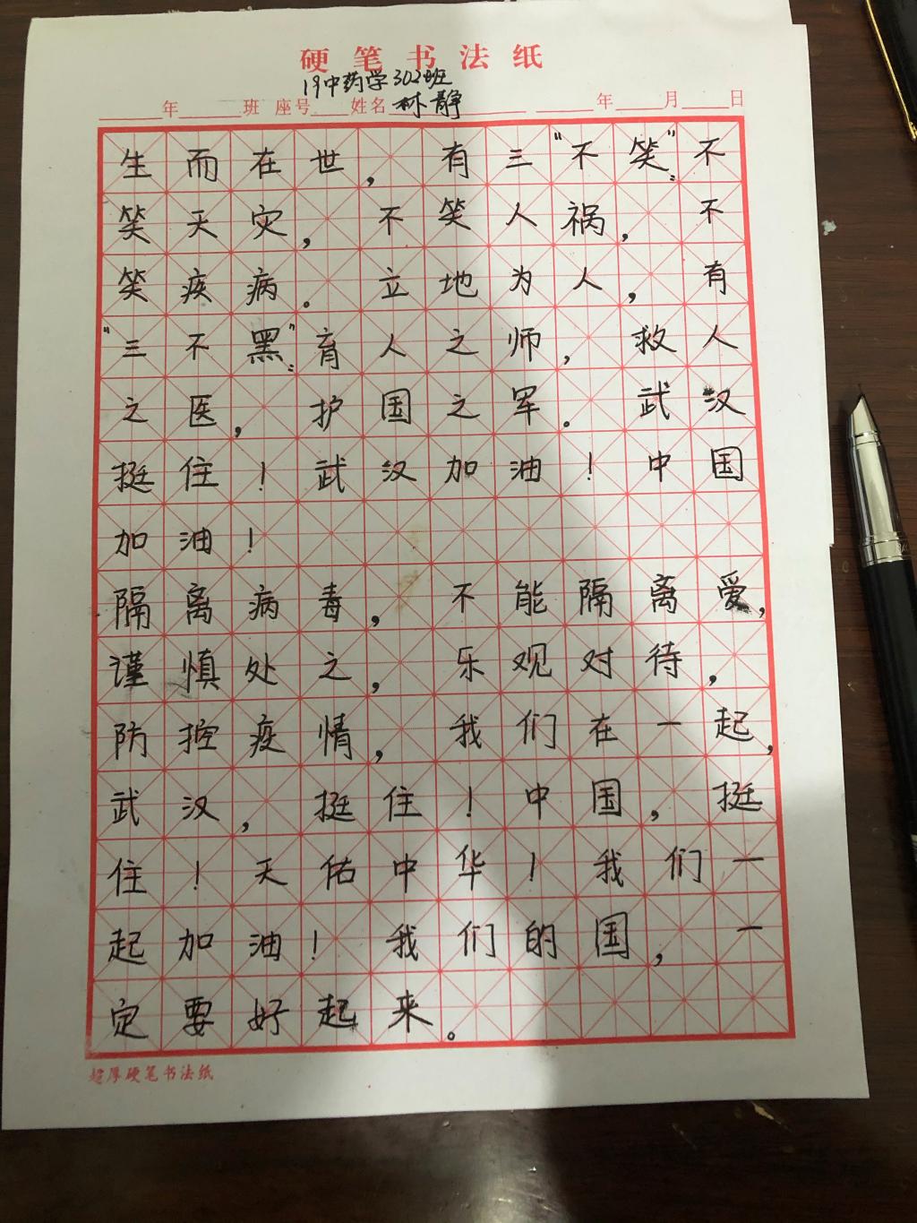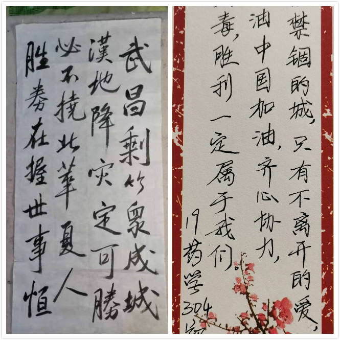 新型冠狀病毒肺炎疫情來(lái)勢(shì)洶洶,牽動(dòng)著閩衛(wèi)院學(xué)子的心。藥學(xué)系學(xué)子以書法作品和書信的形式, 積極投身抗擊疫情的歷史洪流,助力抗“疫”。此次活動(dòng)共收集書法、書信作品七十幾件。筆墨行間對(duì)奮戰(zhàn)在疫情前線白衣天使的崇敬之情,對(duì)戰(zhàn)勝疫情的信心和決心躍然紙上。同學(xué)們表示將盡自己的綿薄之力,傳播凝心聚力正能量,助力打贏疫情防控阻擊戰(zhàn)。