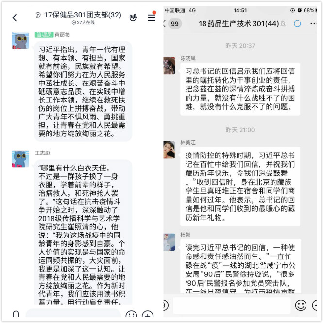 3月15日,習(xí)近平總書記給北京大學(xué)援鄂醫(yī)療隊全體“90后”黨員的回信,向他們和奮斗在疫情防控各條戰(zhàn)線上的廣大青年致以誠摯的問候。習(xí)近平總書記暖心的話深深感染著中國青年,我系青年學(xué)子也備受鼓舞,藥學(xué)系團總支組織各班團支部通過學(xué)習(xí)貫徹習(xí)近平總書記重要回信精神,希望用實際行動踐行新時代青年的責(zé)任與擔(dān)當(dāng)。