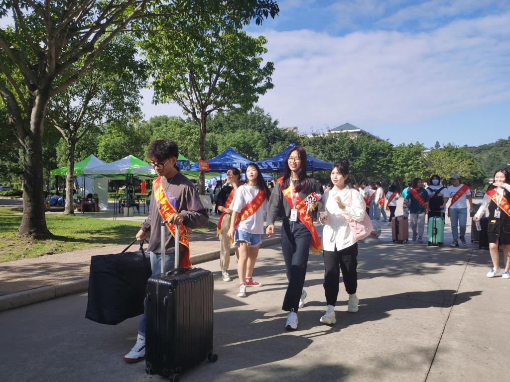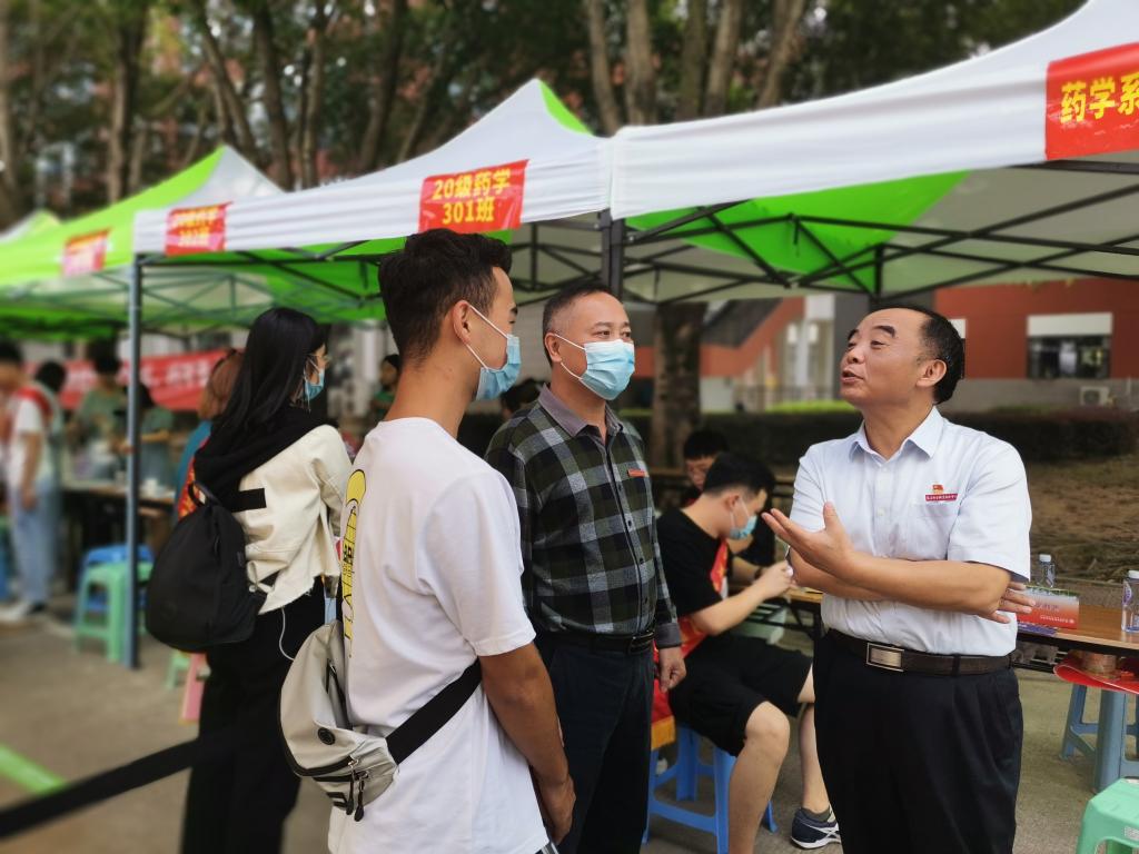 根據(jù)疫情防控的要求,新生家長(zhǎng)及陪同人員不得進(jìn)入校區(qū)內(nèi),藥學(xué)系團(tuán)總支組織了300多名青年志愿者熱情地組織新生有序入場(chǎng)辦理報(bào)到手續(xù)、幫助新生搬運(yùn)行李至宿舍。學(xué)院紀(jì)委游鋒書(shū)記、藥學(xué)系黨總支鄭力宏書(shū)記、肖健副主任、李泳寧副主任、黨總支賴文金副書(shū)記和新生班輔導(dǎo)員一同走訪迎新點(diǎn)和2020級(jí)新生宿舍,他們?cè)敿?xì)詢問(wèn)新生報(bào)到情況,并與新生親切交談,為新生介紹學(xué)校和系部情況,耐心地解答新生們提出的各種疑問(wèn),勉勵(lì)同學(xué)們盡快轉(zhuǎn)變角色,以嶄新的面貌投入到大學(xué)生活當(dāng)中,努力做到學(xué)有所成、學(xué)有所獲。