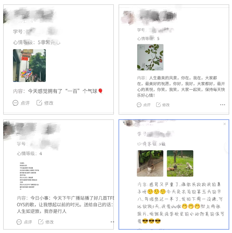 藥學(xué)院以“情緒的聲音”心情日記打卡活動為主推特色活動。該活動吸引了數(shù)百位同學(xué)的積極參與,打卡次數(shù)超千余次。通過活動,同學(xué)們亦或分享一天美好的心情,亦或借此發(fā)泄一些不好的小情緒?;顒又?,也有一些同學(xué)紛紛化身“美食收藏家”“宇宙守藏家”“生活中的小確幸兒”,收藏記錄生活中能代表自己心情符號的照片和文字。