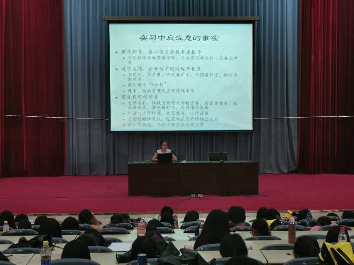 為保證實(shí)習(xí)工作順利開(kāi)展,藥學(xué)系于6月28日在學(xué)術(shù)廳召開(kāi)2019屆實(shí)習(xí)生動(dòng)員大會(huì)。實(shí)踐管理科梁艷科長(zhǎng)、藥學(xué)系潘雪豐副主任、陳潔副書(shū)記以及2015級(jí)五年專和2017級(jí)全體實(shí)習(xí)生參加了此次會(huì)議。
