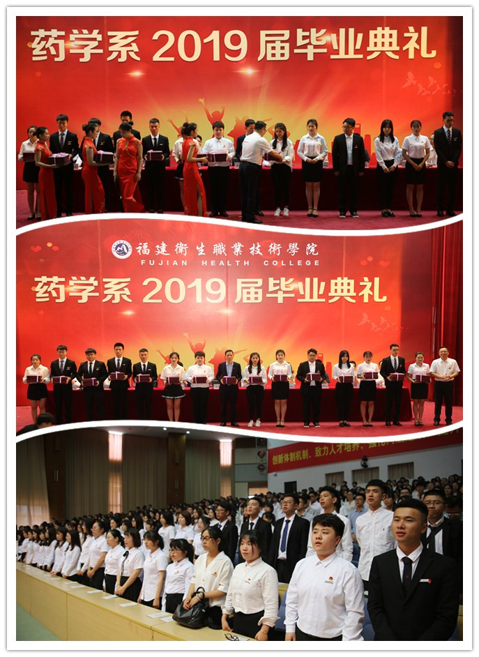 2019年5月29日下午,藥學系在學術廳隆重舉行2019屆畢業(yè)生畢業(yè)典禮。院黨委曾武祈書記、陳貞健副院長、福州海王福藥有限公司張發(fā)喜書記、廈門美商醫(yī)藥有限公司培訓部潘虹經理、教務處王珊珊副處長、學工處宋維副處長、團委黃曦書記、藥學系教職工、部分“二元制”合作企業(yè)教師及2019屆全體畢業(yè)生共同參加本次典禮。典禮由藥學系潘雪豐副主任主持。