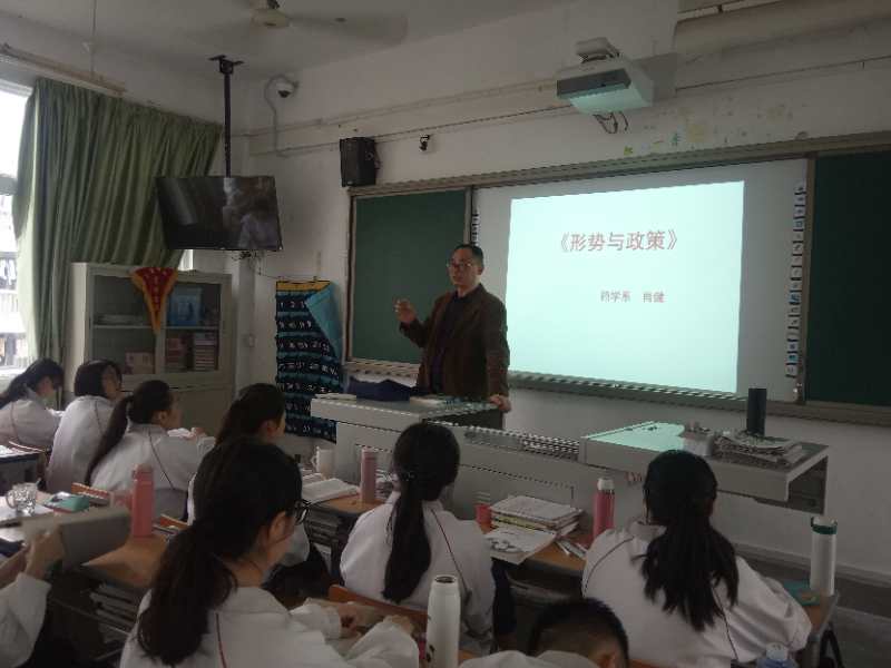 為激發(fā)學(xué)生樹(shù)立國(guó)家主人翁意識(shí),盡快成長(zhǎng)為社會(huì)主義接班人,4月19日藥學(xué)系肖健副主任赴福建經(jīng)濟(jì)學(xué)校為我系五年專(zhuān)學(xué)生上形勢(shì)與政策課。