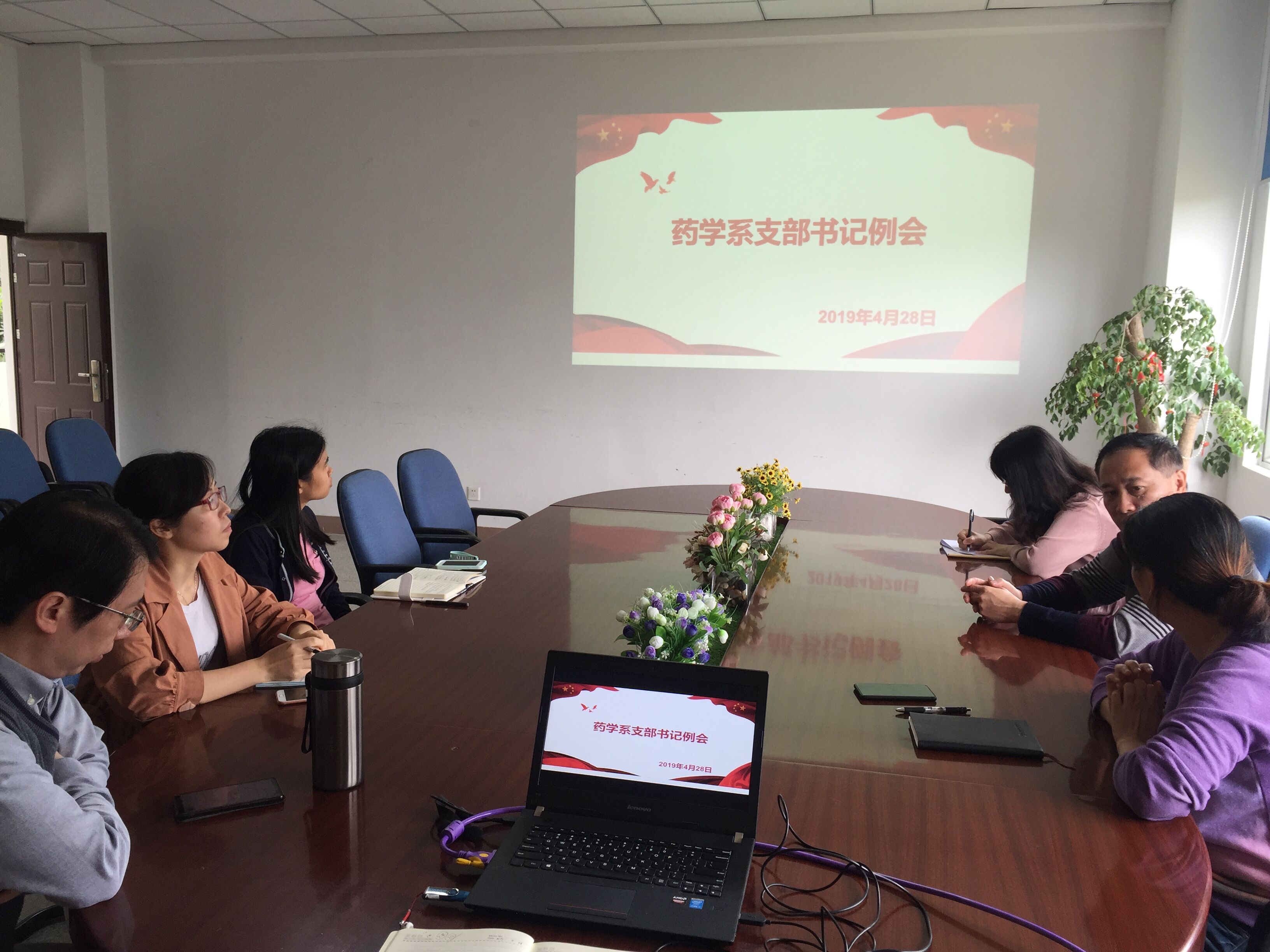 4月28日,藥學(xué)系黨總支在系部會議室召開4月份支部書記例會,會議由黨總支鄭力宏書記主持。