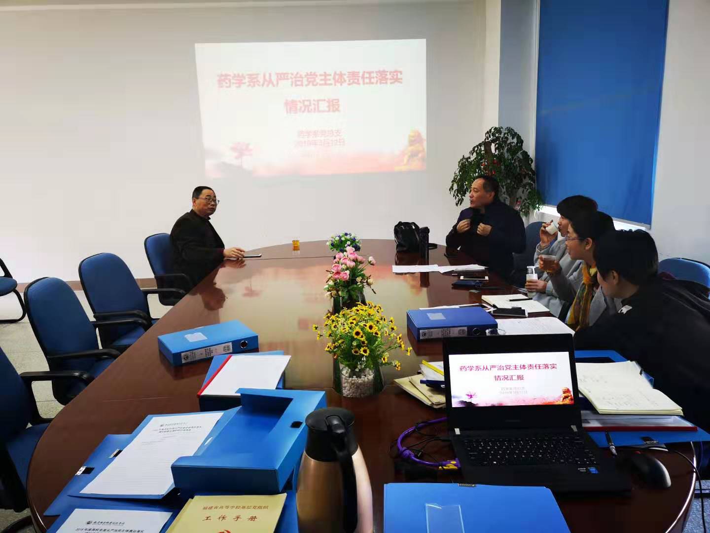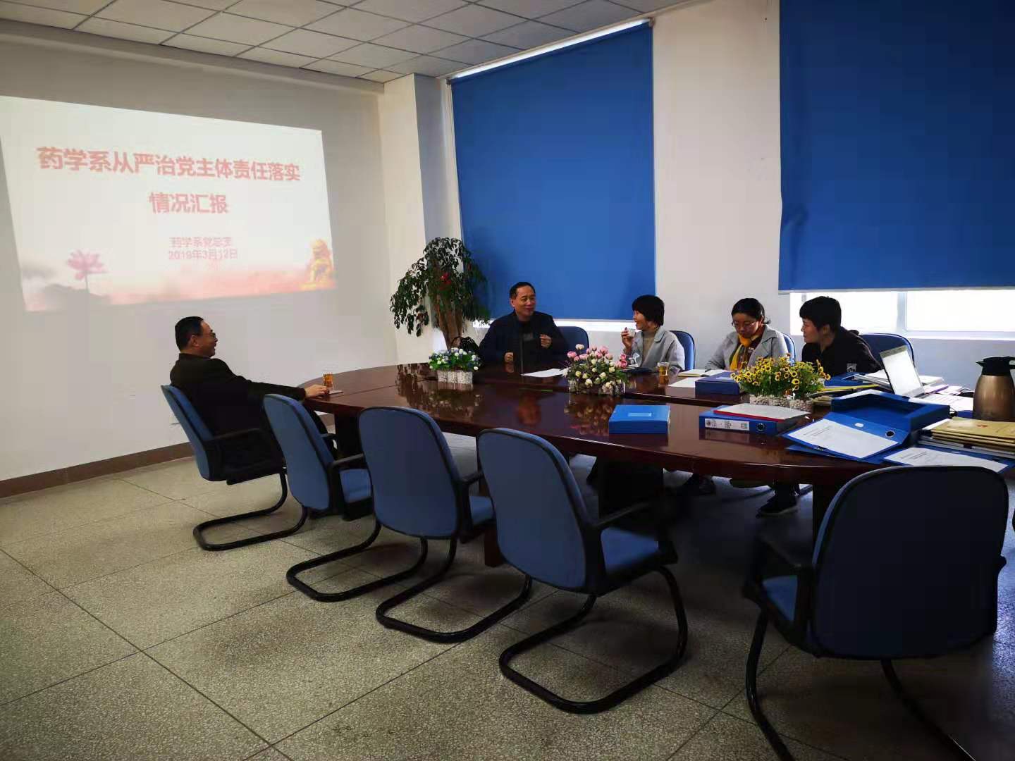 3月12日上午,學(xué)院黃銘珊副院長(zhǎng)、黨工部黃小芳科長(zhǎng)帶領(lǐng)督查小組蒞臨藥學(xué)系,對(duì)藥學(xué)系2018年度全面從嚴(yán)治黨主體責(zé)任落實(shí)情況進(jìn)行專(zhuān)項(xiàng)檢查。