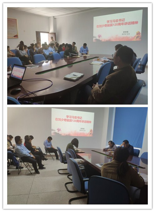 習(xí)近平在紀(jì)念劉少奇同志誕辰120周年座談會(huì)上的重要講話精神。會(huì)議由總支書記鄭力宏主持。