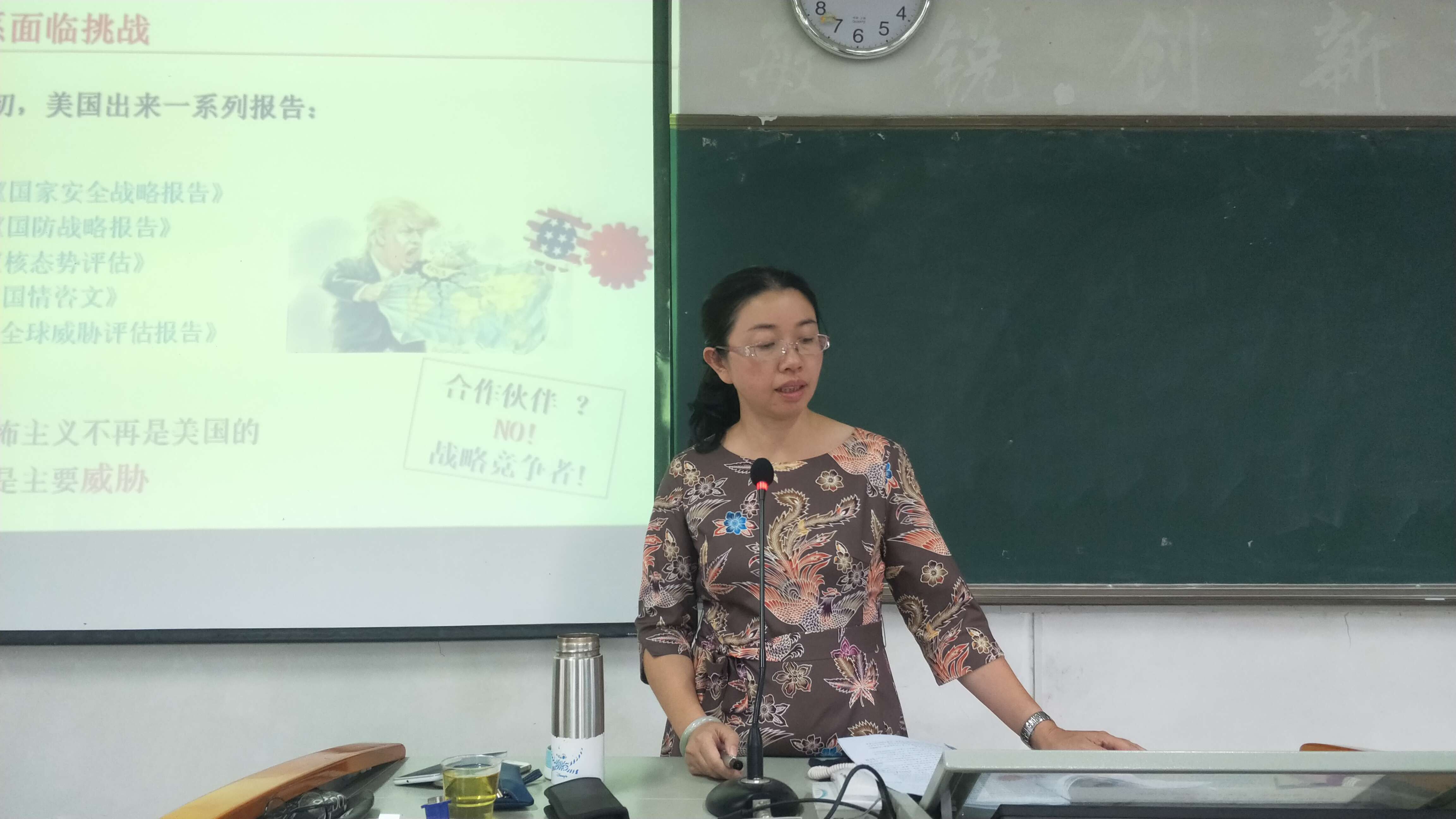 為深入貫徹黨的十九大精神,引導大學生正確把握國內(nèi)外形勢新變化新特點, 9月27日,學院黃銘珊副院長在藥一階為2018級新生講授形勢與政策第一課。本次專題講座以“學習新思想征程新時代勇?lián)率姑睘橹黝},藥學系全體教職工及100余名學生到場聆聽。