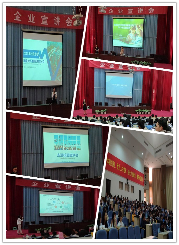 為了讓2016級實(shí)習(xí)生更多地了解實(shí)習(xí)單位情況,也為了讓企業(yè)獲得更多優(yōu)質(zhì)的實(shí)習(xí)生資源,藥學(xué)系于4月24日下午在學(xué)術(shù)廳召開了2016級實(shí)習(xí)生企業(yè)宣講會(huì)。福州偉什醫(yī)藥科技有限公司、鷺燕醫(yī)藥股份有限公司、福建康佰家大藥房連鎖有限公司、福州宜又佳醫(yī)藥連鎖有限公司、福建九州通醫(yī)藥有限公司、福建國大藥房連鎖有限公司等六家公司及2016級400多位學(xué)生參加了此次的企業(yè)宣講會(huì)。