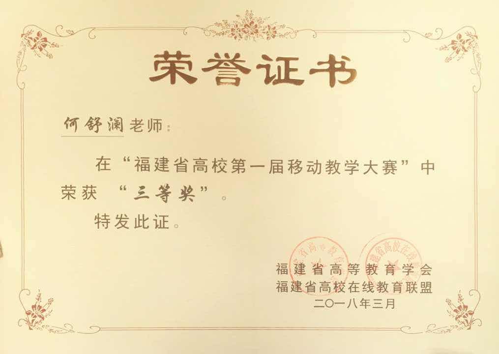 2017年10月30日——2018年1月31日,福建省高等教育學會,福建省高校在線教育聯(lián)盟主辦了“福建省高校第一屆移動教學大賽”,本次大賽共有44所高校223個項目參加,經(jīng)首輪授課數(shù)據(jù)的評比,二輪教學設(shè)計的專家評審。經(jīng)過激烈角逐,最終共30個項目獲獎,其中我系何舒瀾老師的參賽項目《中藥鑒定技術(shù)》榮獲三等獎。