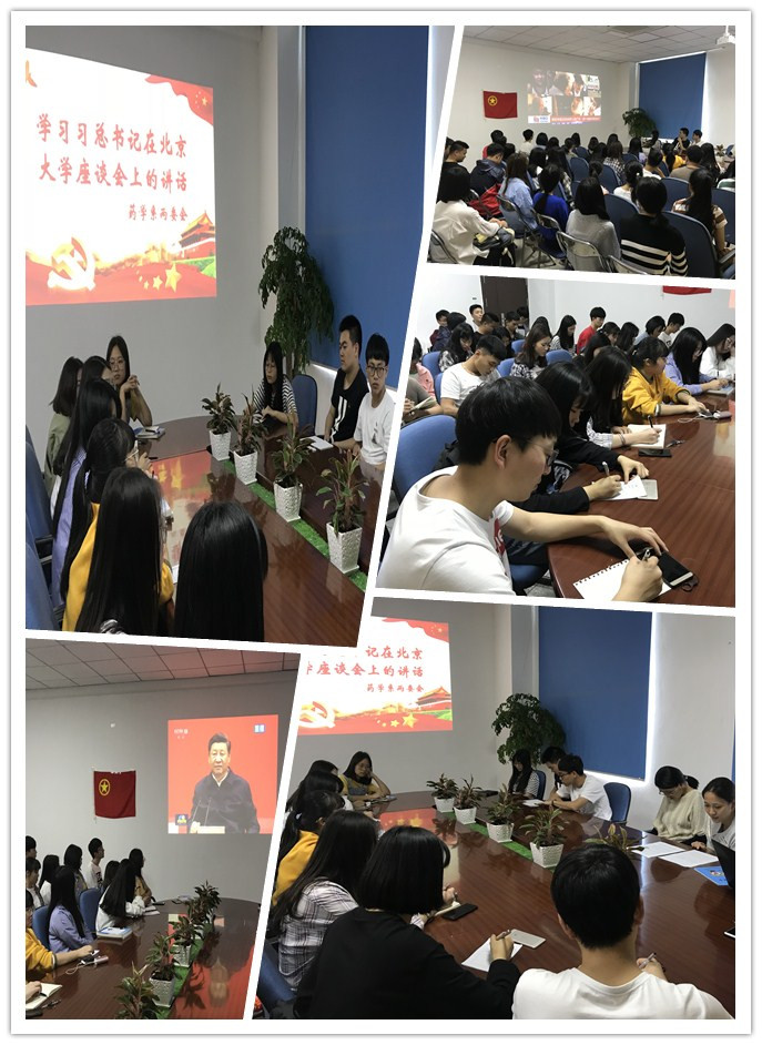 年5月4號中午,藥學(xué)系兩委會全體同學(xué)在黨總支副書記陳潔和團(tuán)總支副書記尹德愛兩位老師的帶領(lǐng)下,在系會議室共同學(xué)習(xí)習(xí)近平總書記5月2日在北京大學(xué)師生座談會的講話精神。