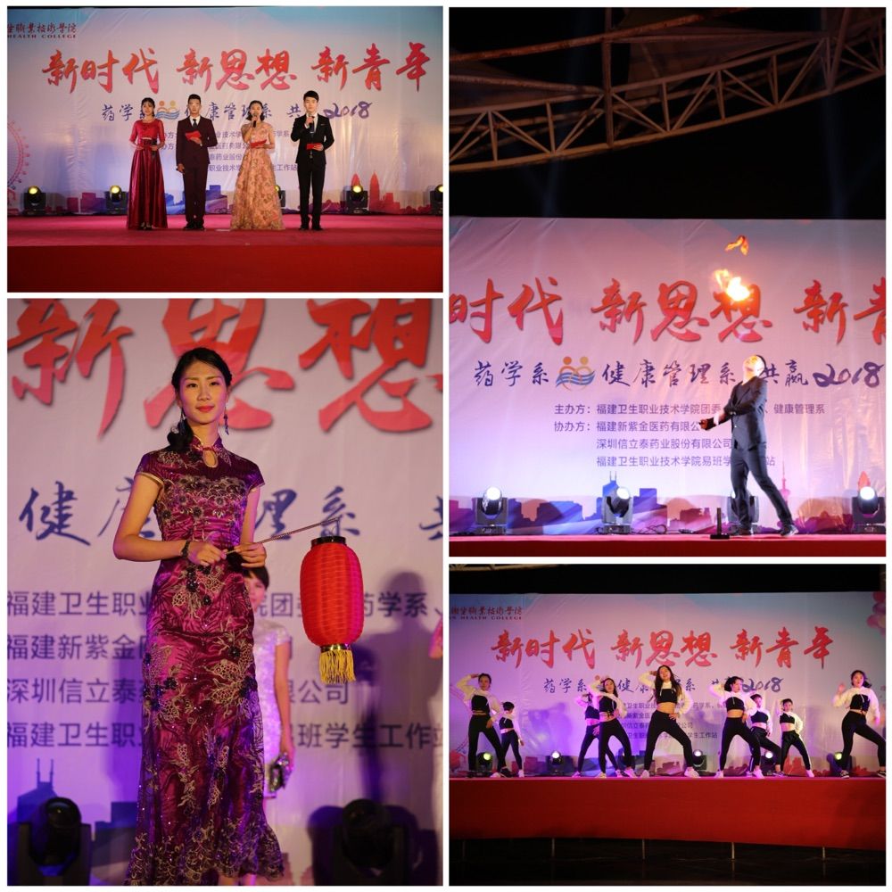 為積極響應(yīng)黨的十九大精神的號(hào)召,展現(xiàn)師生豐富的校園文化生活,值此元旦佳節(jié),福建衛(wèi)生職業(yè)技術(shù)學(xué)院團(tuán)委、藥學(xué)系、健康管理系于2017年12月25日在音樂廣場(chǎng)攜手舉辦以“新時(shí)代、新思想、新青年”為主題的元旦晚會(huì)。出席本次晚會(huì)的嘉賓有學(xué)院黨委林建團(tuán)副書記、福建新紫金醫(yī)藥有限公司鄭朝陽經(jīng)理、深圳信立泰藥業(yè)股份有限公司林毅總經(jīng)理丶王鶴副總經(jīng)理、黨工部吳華部長(zhǎng)、院辦吳燕玲副主任、紀(jì)檢監(jiān)察室程劍芬主任、教務(wù)處王珊珊副處長(zhǎng)、院團(tuán)委黃曦書記、學(xué)工處負(fù)責(zé)人宋維處長(zhǎng)、現(xiàn)代教育技術(shù)中心林穎峰主任、護(hù)理系黨總支謝濤書記、馬克思主義學(xué)院熊美蘭院長(zhǎng)、公基部葉菁主任、醫(yī)學(xué)技術(shù)系邱滾忠副書記,以及各兄弟系部團(tuán)總支書記及老師。黨委林建團(tuán)副書記代表學(xué)院上臺(tái)致辭。