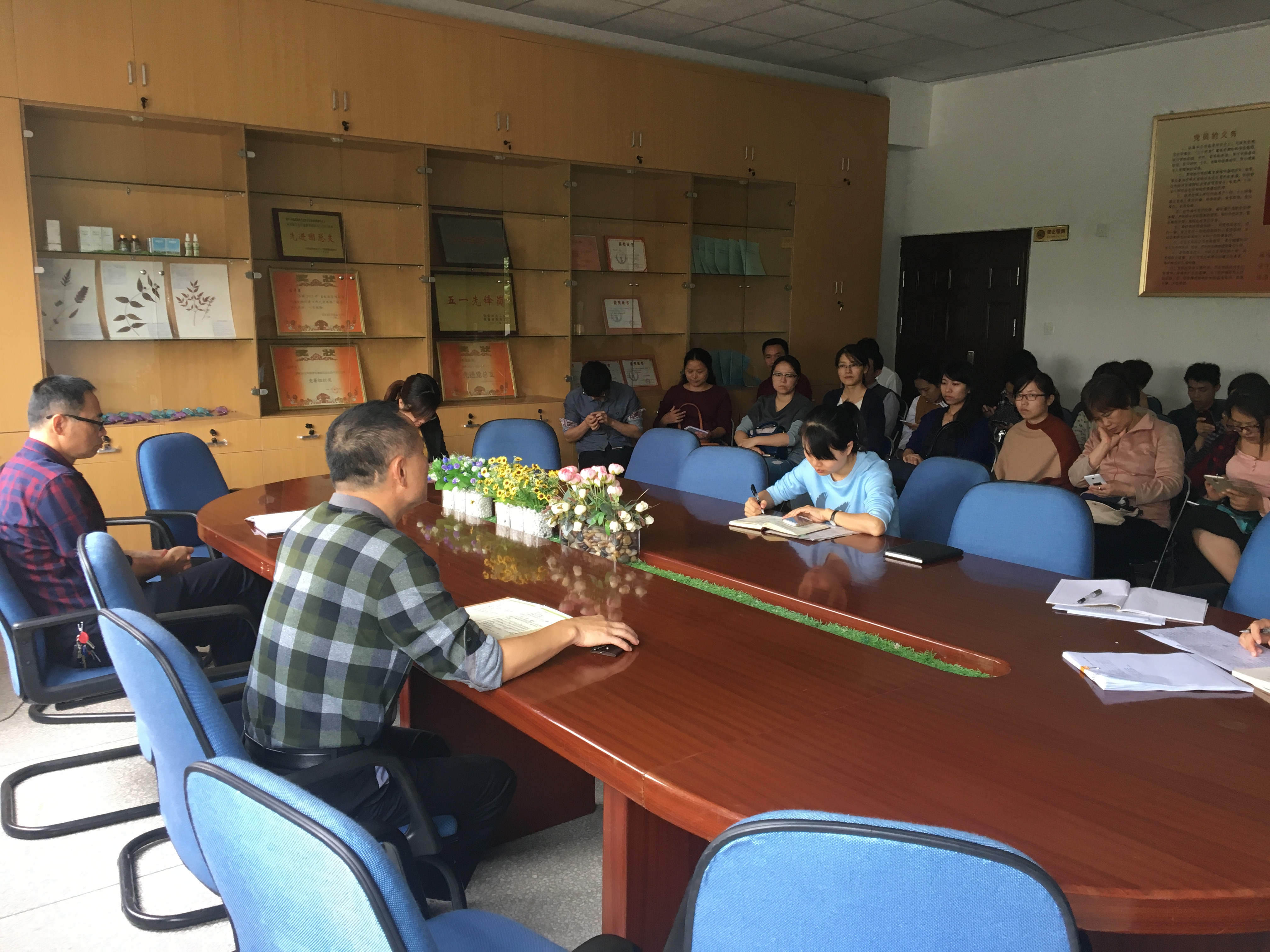 11月7日中午,藥學系組織召開了省文明校園迎檢工作部署會,全體教職工參加本次會議。會議由系黨總支總支書記鄭力宏同志主持。