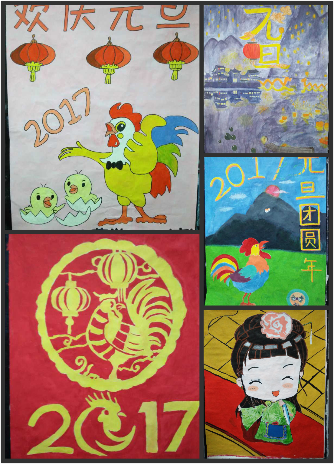 此次比賽共收到13份作品,參賽作品以“元旦節(jié)”為主題,內(nèi)容豐富、畫風新穎,同學們以出色的繪畫水平向大家展示了年輕人張揚的個性和對新一年的向往。最后16藥學304班以雞的圖案為主,中國風特色景物為輔榮獲第一名;16藥學301班榮獲第二名;16藥學302班榮獲第三名。