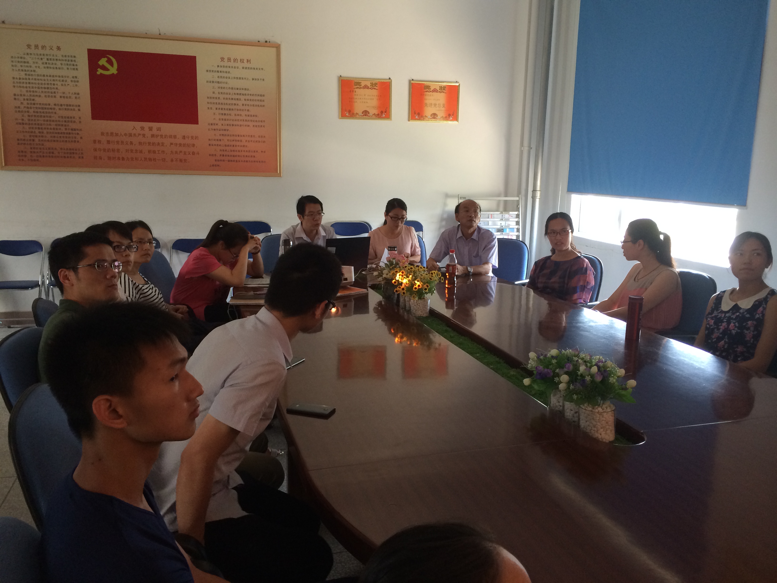 蘇愛華書記首先指出了“兩學(xué)一做”學(xué)習(xí)教育中“書記講黨課”的重要意義,并闡明了本次黨課選題的背景及對學(xué)習(xí)效果的期望,隨后何舒瀾老師分別從“認(rèn)識優(yōu)良作風(fēng)的重要性”,“我黨所具備的優(yōu)良作風(fēng)”及“將優(yōu)良作風(fēng)落到實(shí)處”三個部分對支部黨員和積極分子進(jìn)行了思想教育,黨課在講明我黨優(yōu)良作風(fēng)的基礎(chǔ)上融入了不少實(shí)例,通過對實(shí)例的分析,加深支部黨員對黨風(fēng)的理解,并明確落實(shí)良好作風(fēng)的具體要求。黨課全程氣氛良好,全體黨員認(rèn)真聆聽,積極思考,最后何舒瀾老師還結(jié)合本次黨課的主題對入黨積極分子將來的努力方向提出要求,并對他們在群眾中的先進(jìn)性與表率作用提出期望。