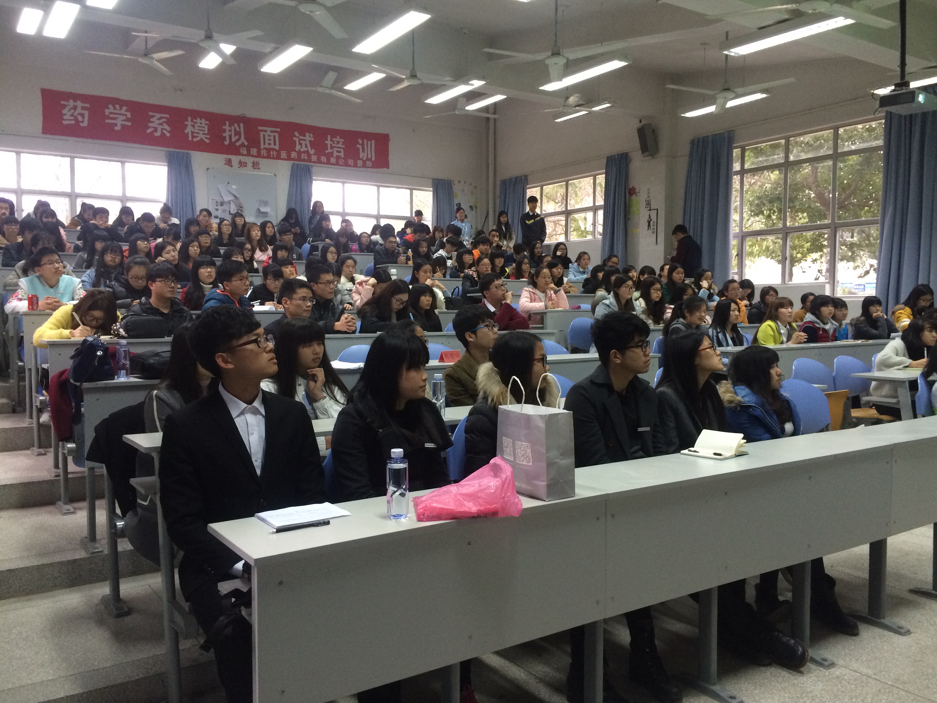 為了讓學(xué)生切身了解不同職位的基本素質(zhì)和本能,更好的完善和提高自己,藥學(xué)系于2016年3月15日在藥一階召開模擬面試培訓(xùn)會(huì)。此次培訓(xùn)會(huì)有幸邀請(qǐng)到偉什醫(yī)藥科技有限公司招聘經(jīng)理池化冰及招聘專員鄭彬焮進(jìn)行現(xiàn)場(chǎng)培訓(xùn)和指導(dǎo),藥學(xué)系蘇愛華書記、系部各輔導(dǎo)員及學(xué)生會(huì)干部應(yīng)邀出席。