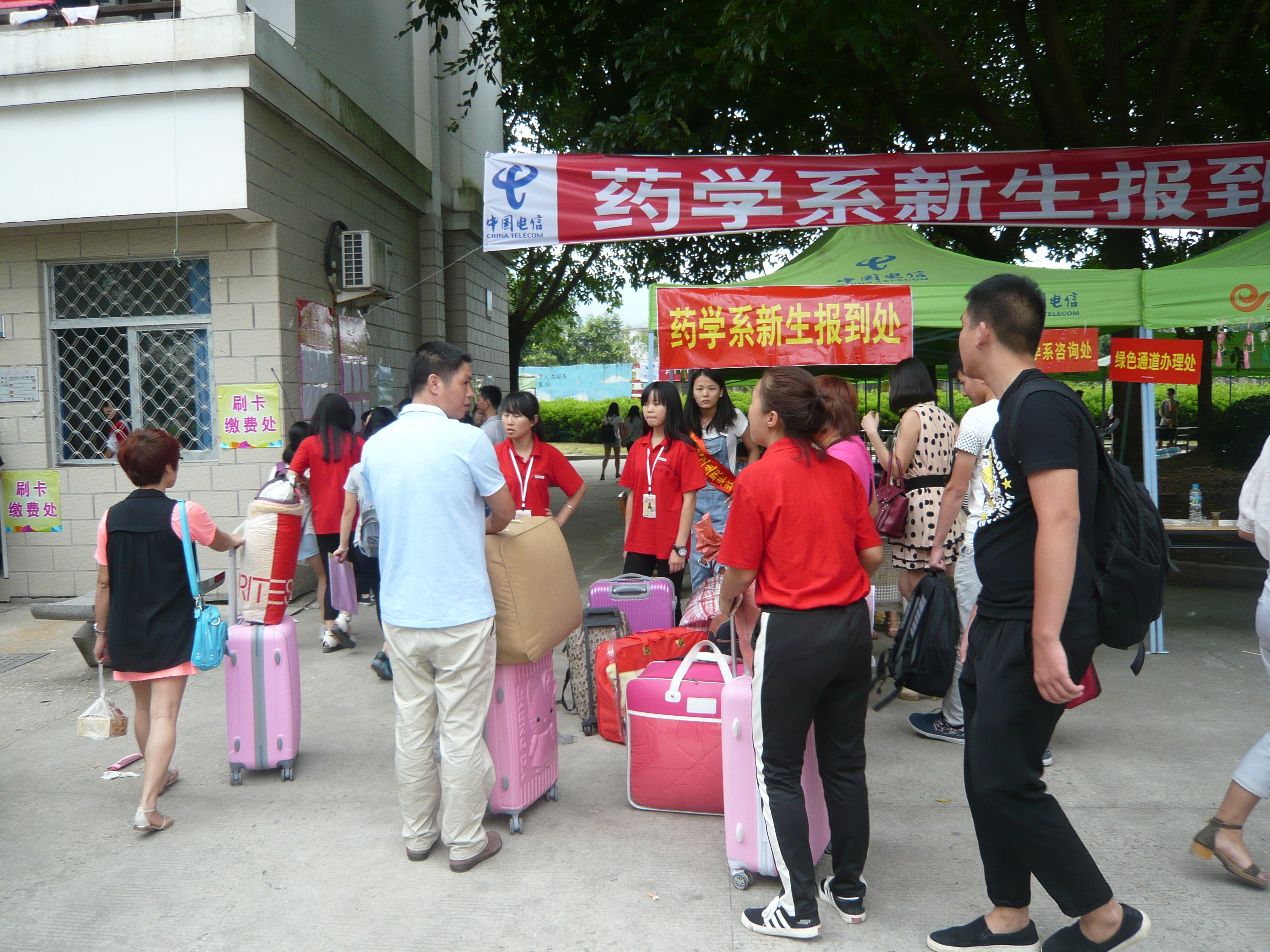 秋高氣爽,風(fēng)清云淡。藥學(xué)系迎來(lái)了2015級(jí)的莘莘學(xué)子,整個(gè)校園都沉浸在忙碌和喜悅當(dāng)中,新鮮的面孔為學(xué)院增添新的氣息,成為了校園里最靚麗的風(fēng)景線。迎新當(dāng)天,系部迎新共安排了240名志愿者分配在校門口、報(bào)到處、咨詢處、銀行刷卡處等,為新生提供全面的服務(wù)。系部領(lǐng)導(dǎo)親臨報(bào)到現(xiàn)場(chǎng),實(shí)時(shí)了解學(xué)生報(bào)到情況,與學(xué)生、家長(zhǎng)進(jìn)行溝通與交流,為學(xué)生解決各方面的問(wèn)題。為了配合本次的迎新工作,我系中藥創(chuàng)業(yè)基地還發(fā)揮了專業(yè)特色,為這次的迎新工作提供了中草藥茶飲,分別有杞菊飲,參麥銀花茶,百合枇杷茶。潤(rùn)肺止咳,清熱解毒,受到了廣大學(xué)生老師家長(zhǎng)的歡迎。最后,在全體參加迎新工作的老師和同學(xué)們的努力下,迎新工作終于落下帷幕,藥學(xué)專業(yè)報(bào)到率高達(dá)94.3%,中藥專業(yè)報(bào)到率達(dá)到86.7%,我系共迎來(lái)了579名新生。新學(xué)期、新面孔,新起點(diǎn),我們相信2015級(jí)新生會(huì)用他們的激情繪寫藥學(xué)系更加波瀾壯闊的明天。