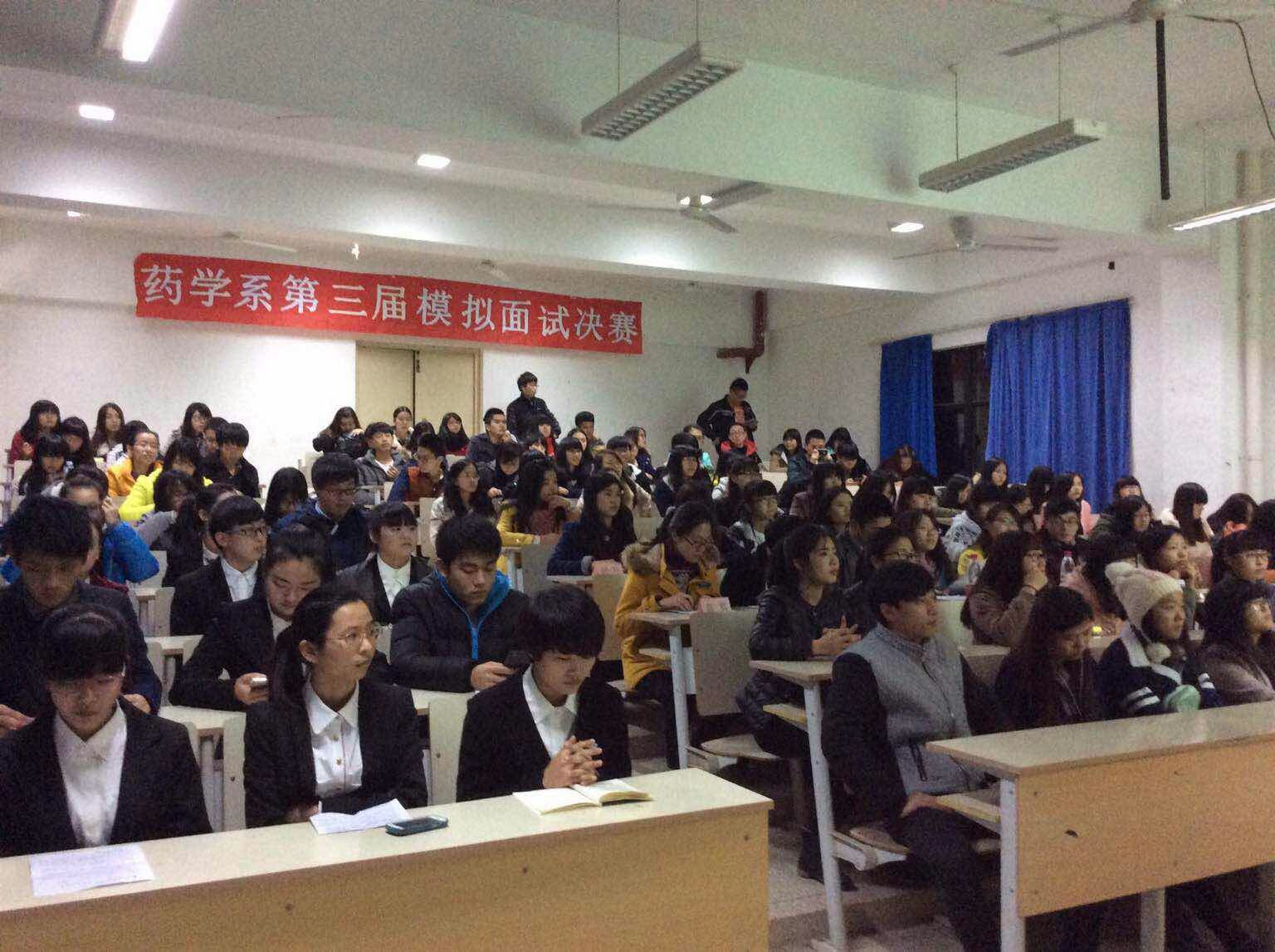 為使當(dāng)代大學(xué)生了解現(xiàn)代企業(yè)的招聘模式、掌握面試技巧、全面提高就業(yè)競(jìng)爭(zhēng)力,藥學(xué)系分別于2014年12月21日和2015年1月28日19:30在教學(xué)樓315舉行模擬面試大賽的初賽和決賽。本次模擬面試決賽邀請(qǐng)了藥學(xué)系黨總支副書記林穎峰老師、藥學(xué)系輔導(dǎo)員李寶珠老師、黃嵩梅老師、劉全裕老師以及兩委會(huì)干部擔(dān)任評(píng)委。