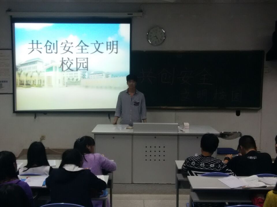 同時,針對系部安全的薄弱環(huán)節(jié),結(jié)合“我安全、我健康、我快樂”主題,在全體師生中深入開展了安全教育活動:各班召開一次安全教育主題班會,組織全體師生觀看安全教育片,14級新生舉行《共創(chuàng)安全文明校園倡議書》簽字儀式、系學(xué)生會宣傳部出一期安全教育專刊海報、各班級組織向?qū)W生發(fā)送一條安全知識短信、系部安全領(lǐng)導(dǎo)小組對系部大樓和學(xué)生宿舍進(jìn)行安全大排查等系列活動。
