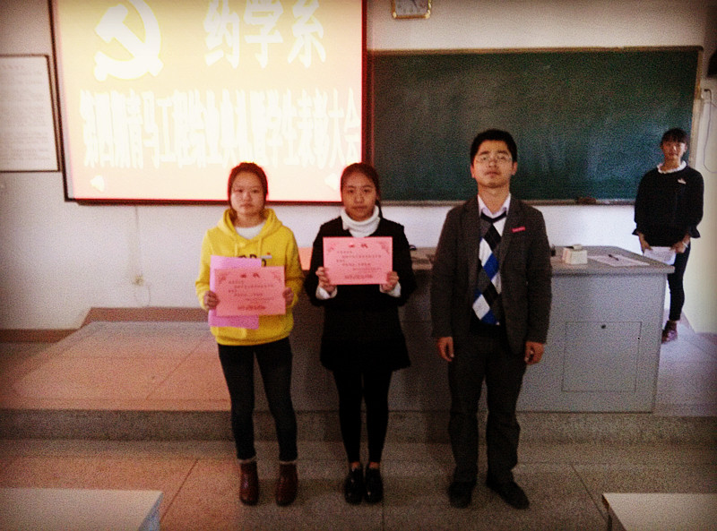 接著進行大會的第二部分—學生表彰大會。首先由系黨總支林穎峰副書記宣讀表彰辭,為在2014年11月份發(fā)生的學生矛盾糾紛事件中見義勇為的江金芳和熊燕燕兩位同學頒獎;由系團總支書記副書記李寶珠老師上臺宣讀表彰辭為在2014年校園體育節(jié)中表現(xiàn)優(yōu)異的啦啦操隊們頒獎。希望全系同學以獲獎的同學為榜樣,在平時的學習生活中積極進取、團結協(xié)作,不斷發(fā)揚見義勇為、奮發(fā)拼搏的精神。