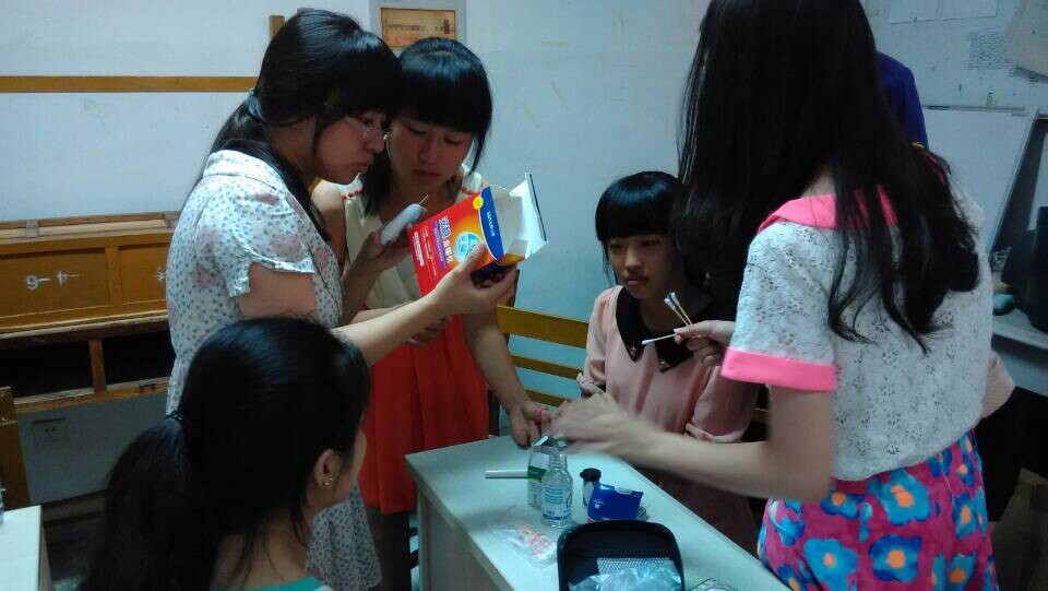 除了前期的事先聯(lián)系單位、采辦相關(guān)藥品、編寫健康宣傳手冊、征集捐贈圖書等準備外,藥學系林麗鳳老師于2014年7月3日在藥學系學生會保衛(wèi)部辦公室對參與社會實踐的志愿者們進行了系統(tǒng)培訓,如常規(guī)用藥、基本農(nóng)村醫(yī)保政策、團隊意識、危機處理及注意事項等方面的知識。同時,為更好地提供義診技能,特邀請臨床系修麗莉老師為“三下鄉(xiāng)”社會實踐的志愿者們進行血壓計、血糖儀及急救技能培訓,使志愿者們更能得心應手地處理活動中遇到的各種問題。