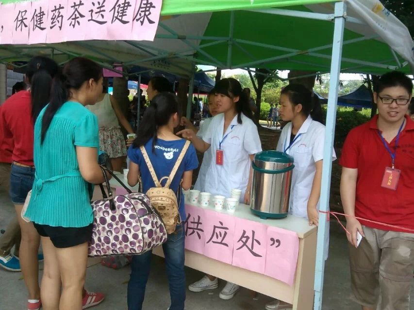 展品一一陳列在展臺上,并提供免費品嘗服務(wù),使新生們及其家長們在一飽眼福的同時大飽口福。與此同時,展示區(qū)都配有專業(yè)的工作人員為大家做關(guān)于“白露養(yǎng)生”方面的講解,經(jīng)過耐心細(xì)致的講解后,學(xué)生與家長們紛紛上前品茶,并不時詢問講解人員這其中的原理,對藥茶有著極大的興趣。縱觀整場活動,展示區(qū)前的同學(xué)與家長們一直絡(luò)繹不絕。三種藥茶參觀實踐下來,同學(xué)與家長們的好奇心與求知心都得到了極大的滿足。