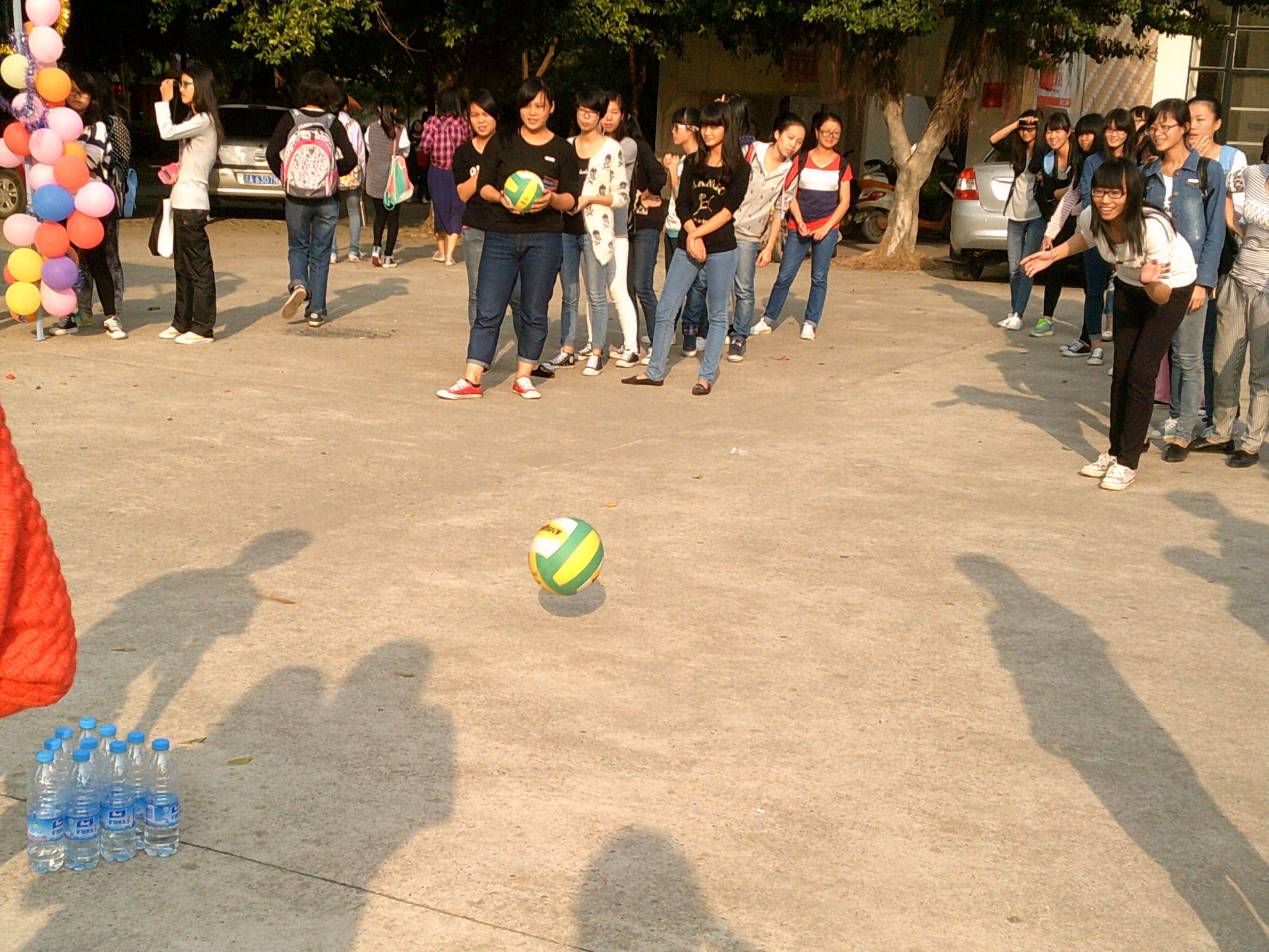 活動分為三個環(huán)節(jié)。第一環(huán)節(jié)是打“保齡球”,打中7個者方可進入第二環(huán)節(jié),即安全知識競答 ; 連續(xù)答對五道題的同學方可進入沖刺超級大獎環(huán)節(jié),并且獲得一份中等的精美禮品;進入沖刺超級大獎環(huán)節(jié)的參賽選手,需連續(xù)答對10道有關(guān)安全的問題,才可獲得終極大獎。