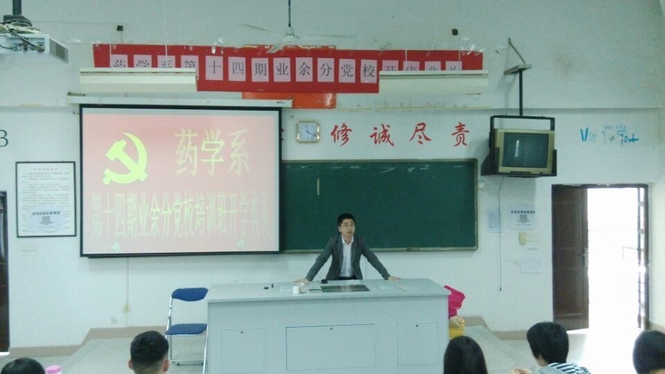 4月9日下午,藥學(xué)系第十四期業(yè)余分黨校于藥學(xué)系二階召開,藥學(xué)系黨總支林穎峰副書記,系學(xué)生支部書記陳瑜老師,系團總支書記林麗鳳老師,系團總支副書記李寶珠老師及輔導(dǎo)員胡丹老師蒞臨本次開班典禮。