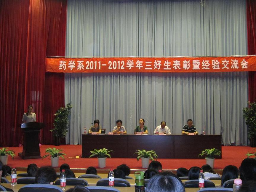 10月17日下午,藥學(xué)系在學(xué)術(shù)廳舉行 “2011—2012學(xué)年三好生表彰暨學(xué)習(xí)經(jīng)驗(yàn)交流會(huì)”,院學(xué)生工作處黃銘珊處長(zhǎng)、系黨總支蘇愛華副書記、林小蘭副主任、陳穗副主任、肖健副主任及我系全體輔導(dǎo)員出席了本次大會(huì),大會(huì)由林小蘭副主任主持。