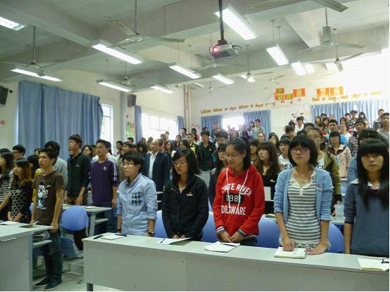 最后,全體起立在國際歌中開班典禮圓滿結束。