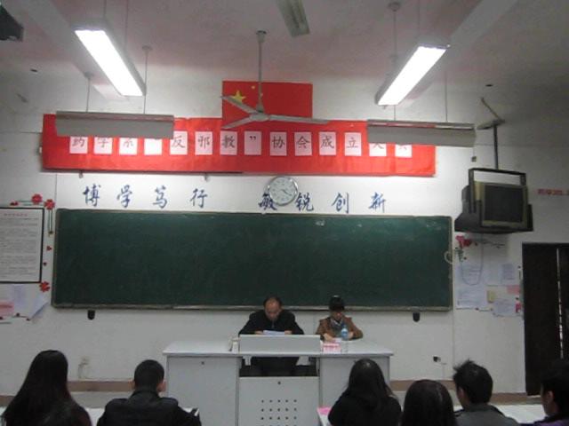 我系于12月13日下午在藥學(xué)系第一階梯教室舉行“藥學(xué)系反邪教分會(huì)成立大會(huì)”,系黨總支蘇愛華副書記,系行政秘書陳潔老師,系第一黨支部葉雅沁老師,系團(tuán)總支王鈍銳書記,系團(tuán)總支陳炳秀副書記以及系部輔導(dǎo)員出席本次會(huì)議。