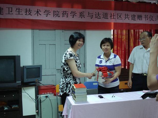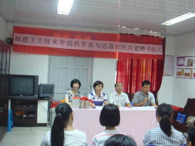 會上,首先由系黨總支蘇愛華副書記致辭,隨后,林小蘭書記與張秀斌主任分別代表學(xué)院和社區(qū)進(jìn)行贈書及揭牌儀式。此次我系共向達(dá)道社區(qū)捐贈圖書900多冊及捐書款600多元,此次共建活動也拉開了我系團(tuán)總支暑期“三下鄉(xiāng)”社會實(shí)踐活動的序幕,充分體現(xiàn)我系黨建帶團(tuán)建工作的顯著效果,福州新聞網(wǎng)等媒體到現(xiàn)場進(jìn)行報道。