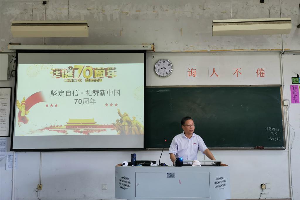 為慶祝新中國成立70周年,進一步增強青少年的獲得感、幸福感、安全感,凝聚和激發(fā)同學們的愛國熱情,2019年9月6日,陳貞健副院長于藥二階以“堅定信念,禮贊中國70周年”為主題,為藥學系 2018級學子講授了一堂生動而精彩的形勢與政策課。