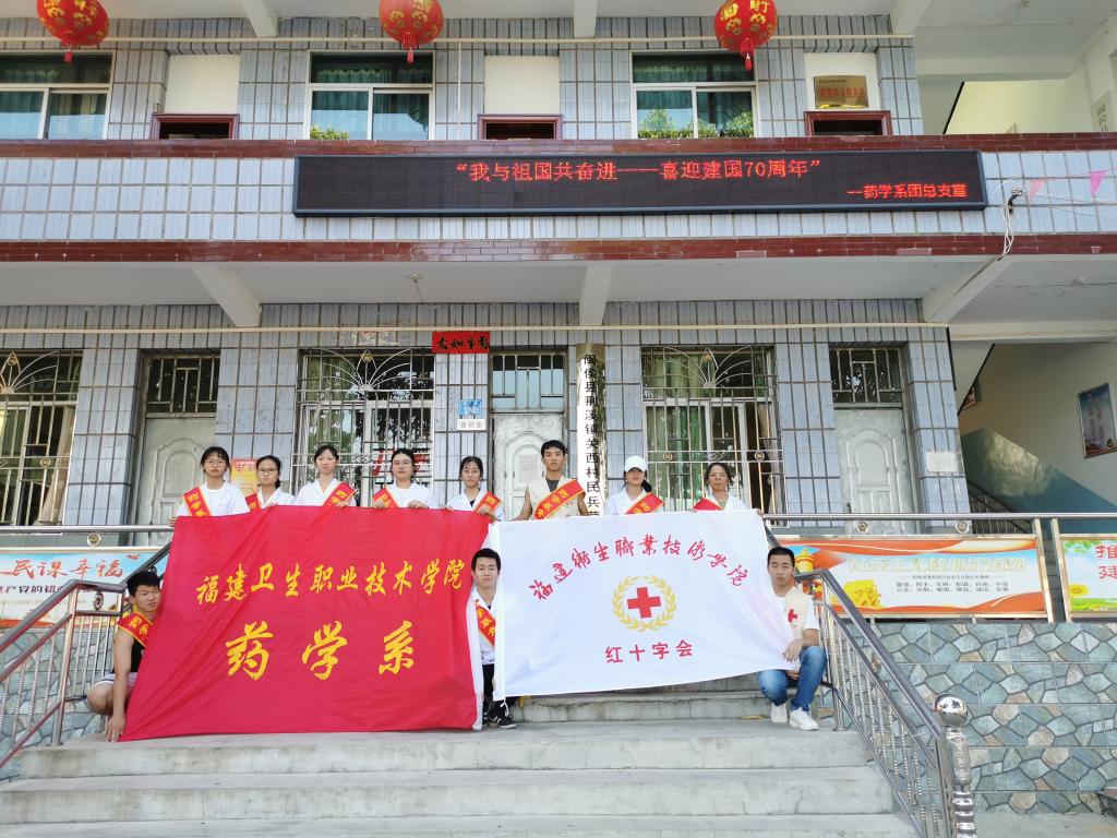為慶祝中華人民共和國成立70周年,服務(wù)百姓、提高居民健康素養(yǎng),傳播健康理念,2019年9月19日,藥學系團總支攜手院紅十字會赴閩侯縣關(guān)西村展開特別主題團日活動——“我與祖國共奮進”。