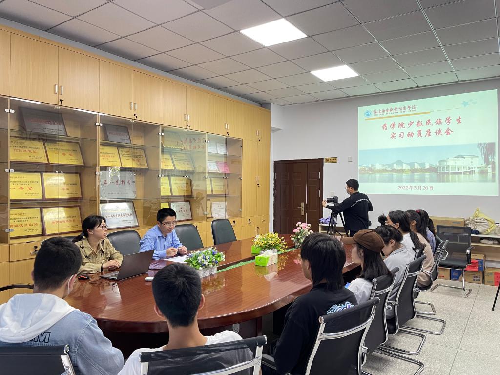 為進(jìn)一步加強(qiáng)與少數(shù)民族學(xué)生的溝通和交流,全面了解少數(shù)民族學(xué)生的思想、學(xué)習(xí)、生活等情況,2022年5月26日,藥學(xué)院黨總支林穎峰書記、賴文金副書記在藥學(xué)院會(huì)議室針對(duì)20級(jí)西藏、新疆等地區(qū)少數(shù)民族學(xué)生的實(shí)習(xí)問(wèn)題,給學(xué)生做專題輔導(dǎo)和動(dòng)員。