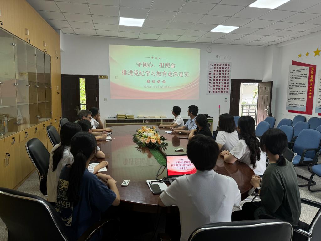 為推動(dòng)黨紀(jì)學(xué)習(xí)教育走深走實(shí),6月13日上午,藥學(xué)院第二黨支部在藥學(xué)院會(huì)議室開展了主題為《守初心、擔(dān)使命 推進(jìn)黨紀(jì)學(xué)習(xí)教育走深走實(shí)》的黨紀(jì)學(xué)習(xí)教育專題黨課。本次會(huì)議由黨支部書記劉丹丹主持,支部教師黨員積極參與。