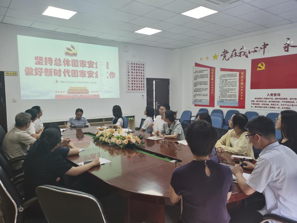 為深入學習貫徹習近平總書記關于總體國家安全觀的重要論述精神,引導廣大黨員進一步增強國家安全意識,4月18日下午,藥學院第二黨支部在藥學院會議室開展集中學習《堅持總體國家安全觀 做好新時代國家安全工作》的主題黨日活動。此次活動由黨支部書記劉丹丹主持,全體教師黨員參加會議。