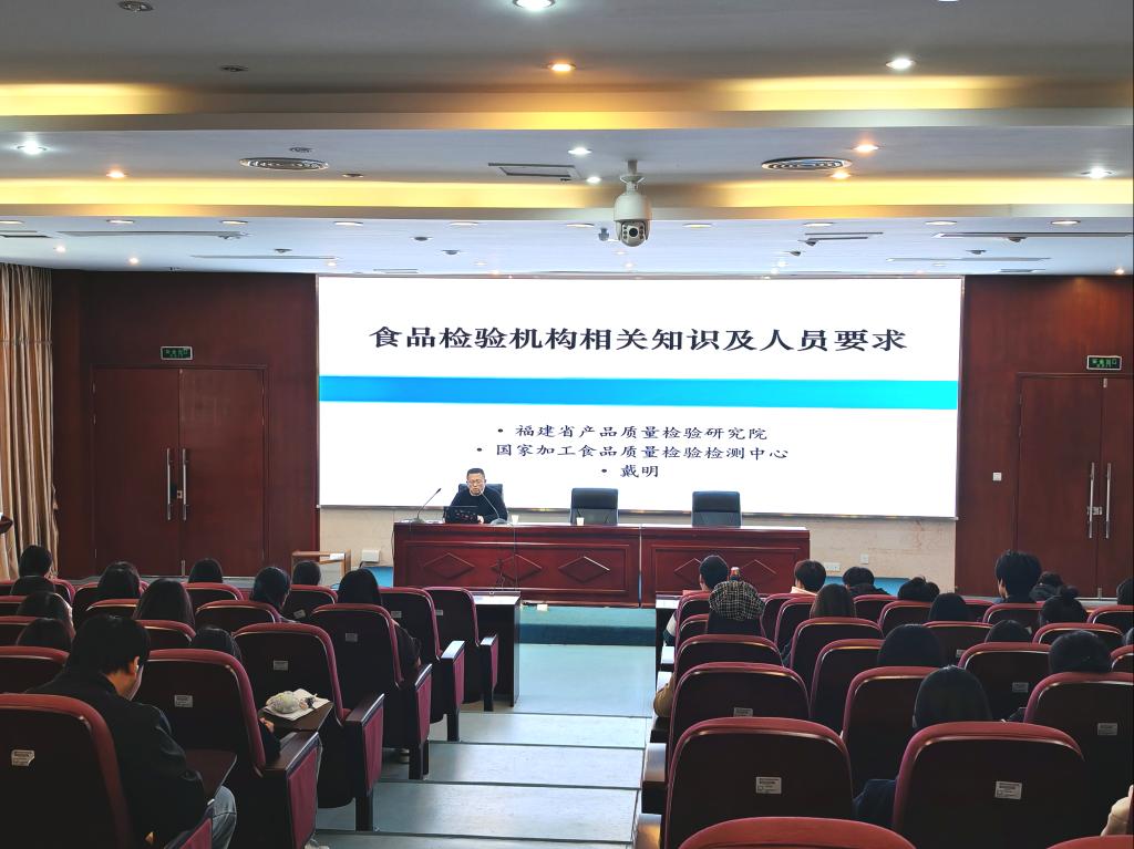 福建省產(chǎn)品質(zhì)量檢驗(yàn)研究院食品檢驗(yàn)研究所副所長戴明為藥學(xué)院師生開展了以“食品檢測人員基本職業(yè)素養(yǎng)與要求”的專題講座,介紹了食品檢測人員基本職業(yè)素養(yǎng)與要求,包括職業(yè)道德、職業(yè)能力,檢驗(yàn)人員需要掌握的法律、法規(guī)、規(guī)章及規(guī)范性文件、標(biāo)準(zhǔn),應(yīng)該具備的實(shí)驗(yàn)知識與實(shí)驗(yàn)技能,同時(shí)還介紹目前食品檢驗(yàn)機(jī)構(gòu)的發(fā)展現(xiàn)狀等,讓同學(xué)們更加深入地認(rèn)識到食品檢驗(yàn)機(jī)構(gòu)的發(fā)展現(xiàn)狀及其對專業(yè)人才的要求。