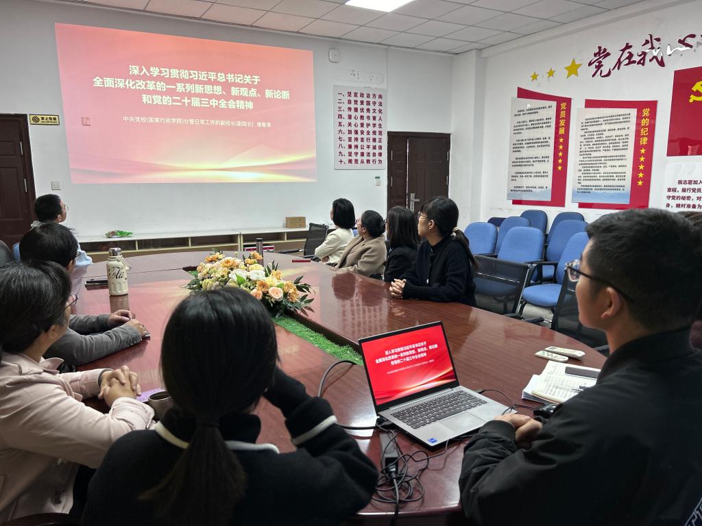 會上,支部黨員們集體觀看了黨的二十屆三中全會精神專題輔導(dǎo)視頻,學(xué)習了全會提出的新思想、新觀點、新論斷,深刻領(lǐng)會和把握全面深化改革的主題、重要性和必要性,深刻領(lǐng)會和把握全面深化改革的重大原則。觀看結(jié)束后,同志們結(jié)合自身崗位實際交流了學(xué)習體會。黨員教師們紛紛表示活動加深了對全會精神的理解和認識,更加明確肩負的責任和使命,將努力把學(xué)習成果轉(zhuǎn)化為提升教書育人工作成效的具體行動。
