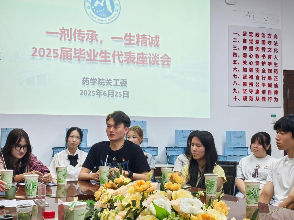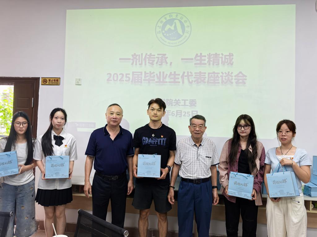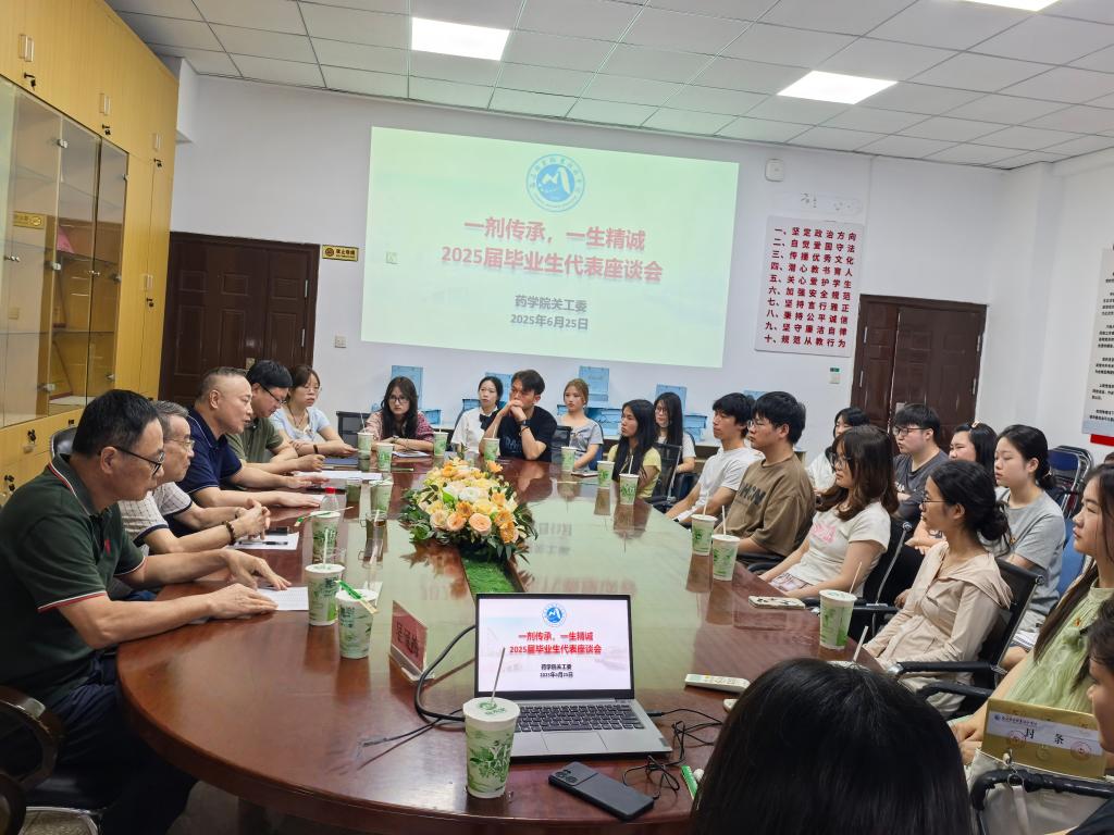 蟬鳴聲中又到畢業(yè)季,驪歌輕唱啟風(fēng)帆。 2025年6月25日上午,藥學(xué)院會議室內(nèi)茶香裊裊,流淌著畢業(yè)季特有的眷戀與希冀。藥學(xué)院關(guān)工委邀請退休老同志歐春木、鄭力宏、肖健到校,與來自不同專業(yè)、不同民族、涵蓋多種發(fā)展路徑的24名畢業(yè)生代表圍坐一堂,共同參加一場啟航座談會。