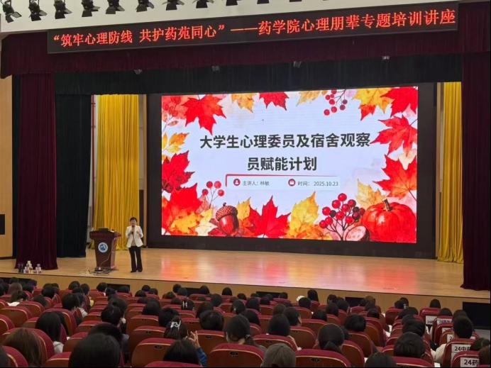 10月23日,藥學(xué)院邀請(qǐng)了福州大學(xué)心理學(xué)專(zhuān)家林敏老師到校開(kāi)展以“筑牢心理防線,共護(hù)藥苑同心”為主題的心理朋輩專(zhuān)題培訓(xùn)講座,藥學(xué)院全體心理委員、宿舍觀察員及心理朋輩志愿者共400余人參加。