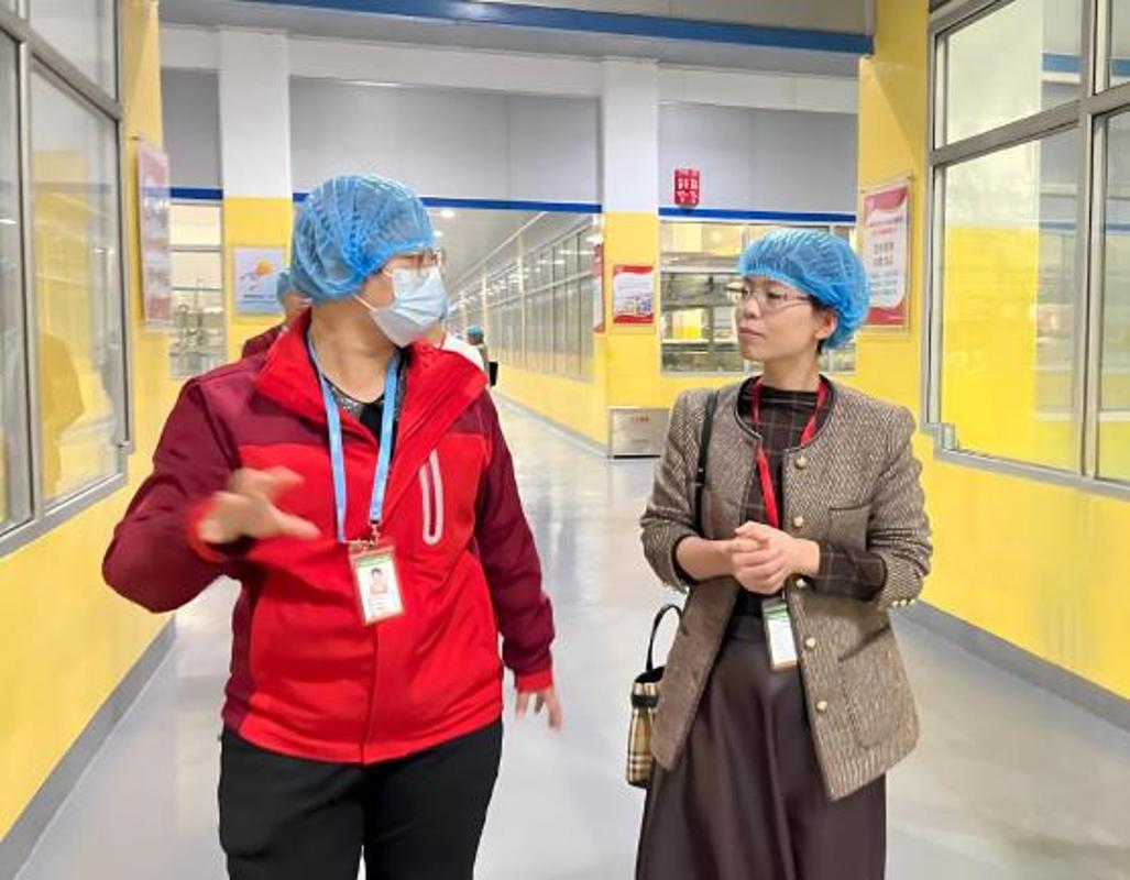參觀環(huán)節(jié)中,盼盼向調(diào)研組展示了烘焙、飲料等主要生產(chǎn)線與在線監(jiān)測點位,并在品質(zhì)檢驗中心詳細介紹了從原料檢驗到成品放行的全過程,使學(xué)院團隊更加精準(zhǔn)掌握企業(yè)品控崗位能力要求。