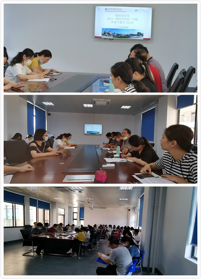 2020年6月4日下午,臨床醫(yī)學(xué)系全體教職工集中實訓(xùn)樓310,學(xué)習(xí)《關(guān)于加強和改進新時代師德師風(fēng)建設(shè)的意見》及《新時代高等學(xué)校思想政治理論課教師隊伍建設(shè)規(guī)定》。