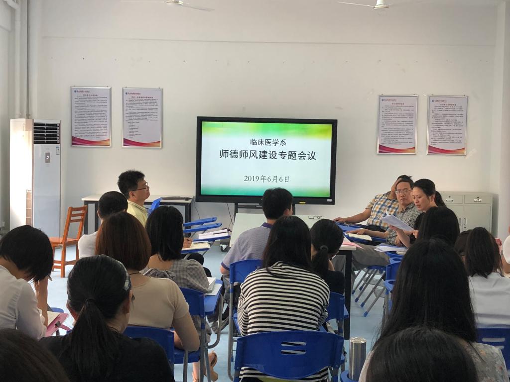 2019年6月6日下午,臨床醫(yī)學(xué)系在實(shí)訓(xùn)樓401室召開師德師風(fēng)建設(shè)專題會(huì)議,臨床醫(yī)學(xué)系全體教職工參加了會(huì)議,會(huì)議由郭禮堅(jiān)主任主持。