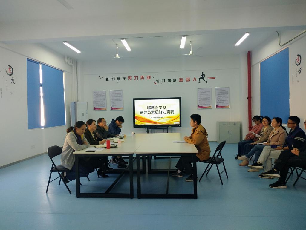 11月29日下午,臨床醫(yī)學(xué)系2019年輔導(dǎo)員素質(zhì)能力大賽在實(shí)訓(xùn)樓401成功舉辦。本次大賽旨在深入學(xué)習(xí)宣傳貫徹習(xí)近平新時(shí)代中國特色社會主義思想,扎實(shí)推進(jìn)“不忘初心、牢記使命”主題教育,堅(jiān)持把立德樹人作為中心環(huán)節(jié),不斷提升輔導(dǎo)員的理論水平和職業(yè)能力。