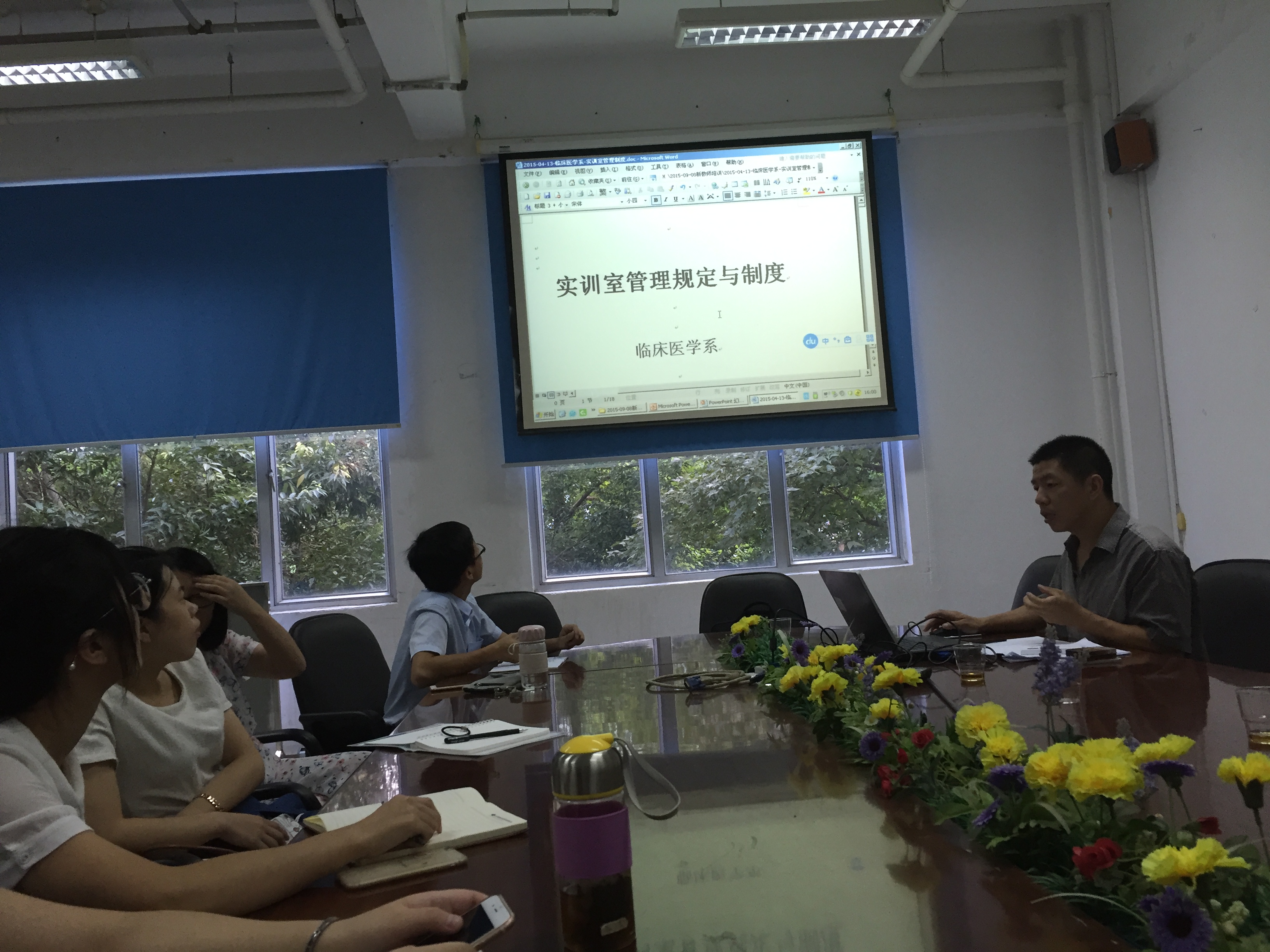培訓(xùn)會(huì)上葉菁主任、洪聿榮書(shū)記和林國(guó)威副主任分別向新老師介紹了臨床系和醫(yī)學(xué)基礎(chǔ)部的基本概況,學(xué)院對(duì)教師師德教育的要求,系部黨建和學(xué)生管理工作情況,學(xué)院及系部教學(xué)規(guī)范要求及教學(xué)管理規(guī)則、專(zhuān)業(yè)教學(xué)培訓(xùn)以及學(xué)院考勤、資產(chǎn)和實(shí)訓(xùn)室安全等管理規(guī)定。