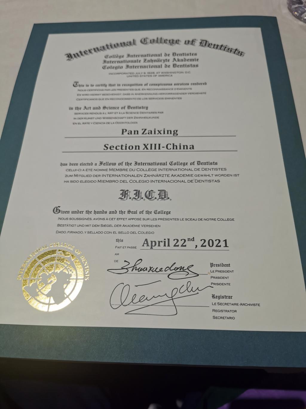 近日,國(guó)際牙醫(yī)師學(xué)院中國(guó)區(qū)(International College of Dentists Section XIII-China, ICD China Section )2021年學(xué)術(shù)會(huì)暨院士授予大會(huì)在四川成都舉行。我校醫(yī)學(xué)系口腔醫(yī)學(xué)專(zhuān)業(yè)帶頭人,福建省級(jí)機(jī)關(guān)醫(yī)院副院長(zhǎng)潘在興教授,當(dāng)選新一屆國(guó)際牙醫(yī)師學(xué)院院士。